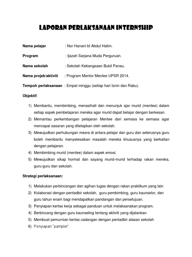 Laporan Program Mentor Mentee Upsr 2014 Pdf